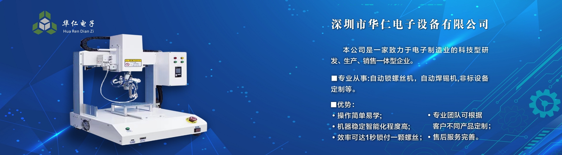 深圳市華仁電子設(shè)備有限公司是一家致力于電子制造業(yè)周邊設(shè)備的科技型研發(fā)、生產(chǎn)、銷售一體的企業(yè),專業(yè)從事:自動(dòng)鎖螺絲機(jī);自動(dòng)焊錫機(jī);非標(biāo)設(shè)備定制機(jī)等,公司長期以來在行業(yè)中積累了豐富的經(jīng)驗(yàn),擁有專業(yè)的研發(fā)、技術(shù)、銷售支持工程團(tuán)隊(duì)、各高級(jí)技術(shù)人才為客戶提供優(yōu)質(zhì)產(chǎn)品和服務(wù),同時(shí)不斷吸取國內(nèi)外先進(jìn)技術(shù),更準(zhǔn)確及時(shí)地為客戶提供優(yōu)質(zhì),性價(jià)比高的產(chǎn)品、公司以專業(yè)的售前、售中、售后服務(wù)贏得了客戶的信賴和好評(píng),為客戶提供先進(jìn)自動(dòng)化設(shè)備一體式解決方案、